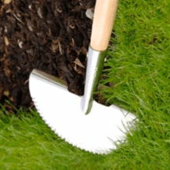 Een net gazon heeft natuurlijk strakke graskanten. Die creëer je natuurlijk met deze roestvrijstalen graskantensteker. Dankzij het brede T-vormige handvat kun je veel grip houden en deze comfortabel vasthouden. De lange FSC essenhouten steel verminderd daarbij de belasting van de rug in combinatie met de handige steps die ook zere voeten voorkomen. Het ronde blad steekt met al deze eigenschappen moeiteloos door de grond zodat je deze netjes en strak af kunt steken.